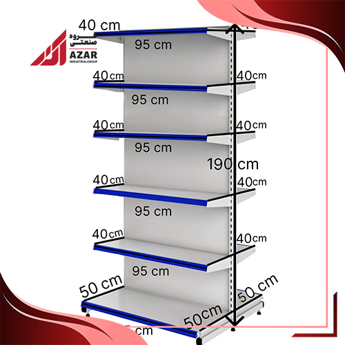 قفسه هایپری دو طرفه ۶ طبقه با طراحی صنعتی، ساختار فلزی مستحکم و ابعاد استاندارد، راه‌حلی حرفه‌ای برای چیدمان منظم و نمایش مؤثر کالاها در فضای فروشگاهی است. عرض ۹۵ سانتی‌متر و ارتفاع ۱۹۰ سانتی‌متر فضای کافی برای قرارگیری انواع محصولات را فراهم می‌کند. طبقه پایین با عمق ۵۰ سانتی‌متر برای اقلام حجیم‌تر و طبقات بالایی با عمق ۴۰ سانتی‌متر برای کالاهای سبک‌تر طراحی شده‌اند. طراحی دو طرفه این قفسه، امکان دسترسی از هر دو سمت را فراهم کرده و باعث افزایش بهره‌وری در مسیرهای عبوری فروشگاه‌ها می‌شود.
