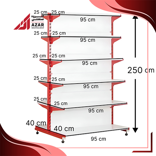 قفسه سوپری دو طرفه 6 طبقه 95×25 ارتفاع 250