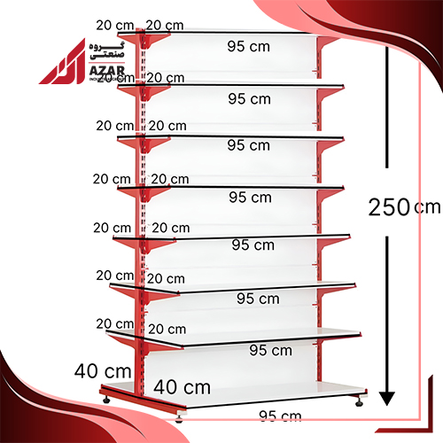 قفسه سوپری دو طرفه 8 طبقه 95×20 ارتفاع 250