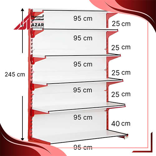 قفسه سوپری دو طرفه 5 طبقه 95×30 ارتفاع 160