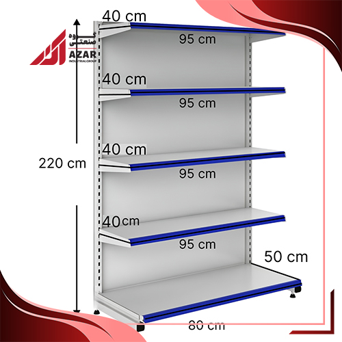 قفسه سوپری دو طرفه 5 طبقه 95×30 ارتفاع 160