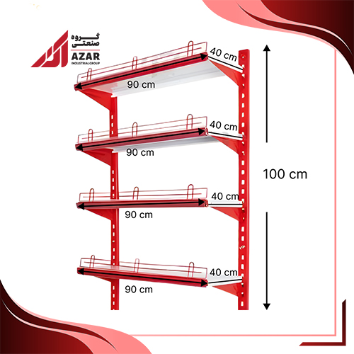 قفسه دیواری چند منظوره ۴ طبقه با ابعاد ۹۰×۴۰ و ارتفاع ۱۰۰ سانتیمتر، انتخابی ایدهآل برای فضاهاییست که نیاز به نظمدهی حرفهای و جلوهای بصری دارند. طراحی این محصول با رنگ قرمز جذاب و ریلهای محافظ فلزی در جلوی هر طبقه، هم ایمنی وسایل را تضمین میکند و هم جلوهای صنعتی و مدرن به محیط میبخشد. ساختار فلزی با پایههای عمودی سوراخدار، امکان تنظیم ارتفاع طبقات را فراهم کرده و انعطافپذیری بیشتری در چیدمان ایجاد میکند.